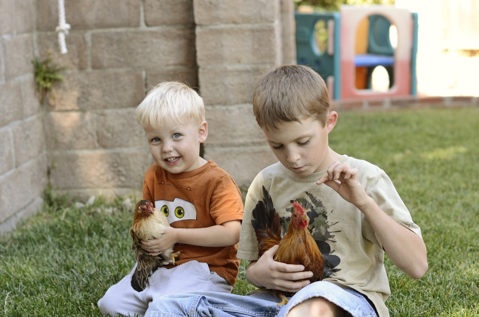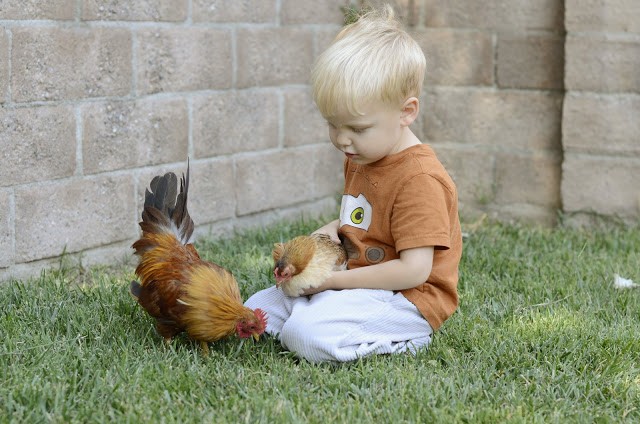 He is VERY proud of HIS chickens and yes very controlling and tells Adam which one he can hold. We clipped the wings so they won’t fly so high.
