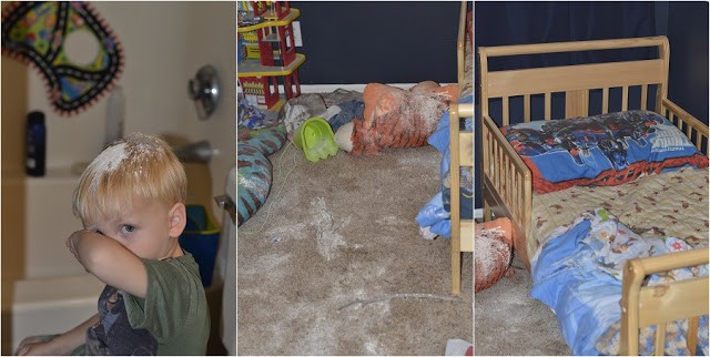 When he’s over tired its hard for him to get to sleep and so he normally needs daddy to tickle his back to calm him down for a while.  We have found Luke getting into mischief as well! So far three times he’s gotten into the baby powder and baby lotion when its bed time.  Little stinker!!