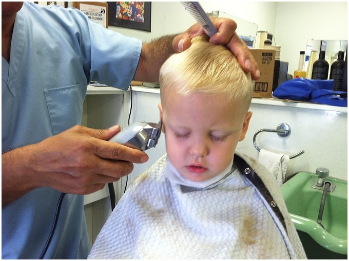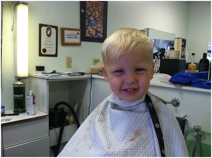My little Luke getting a hair cut!