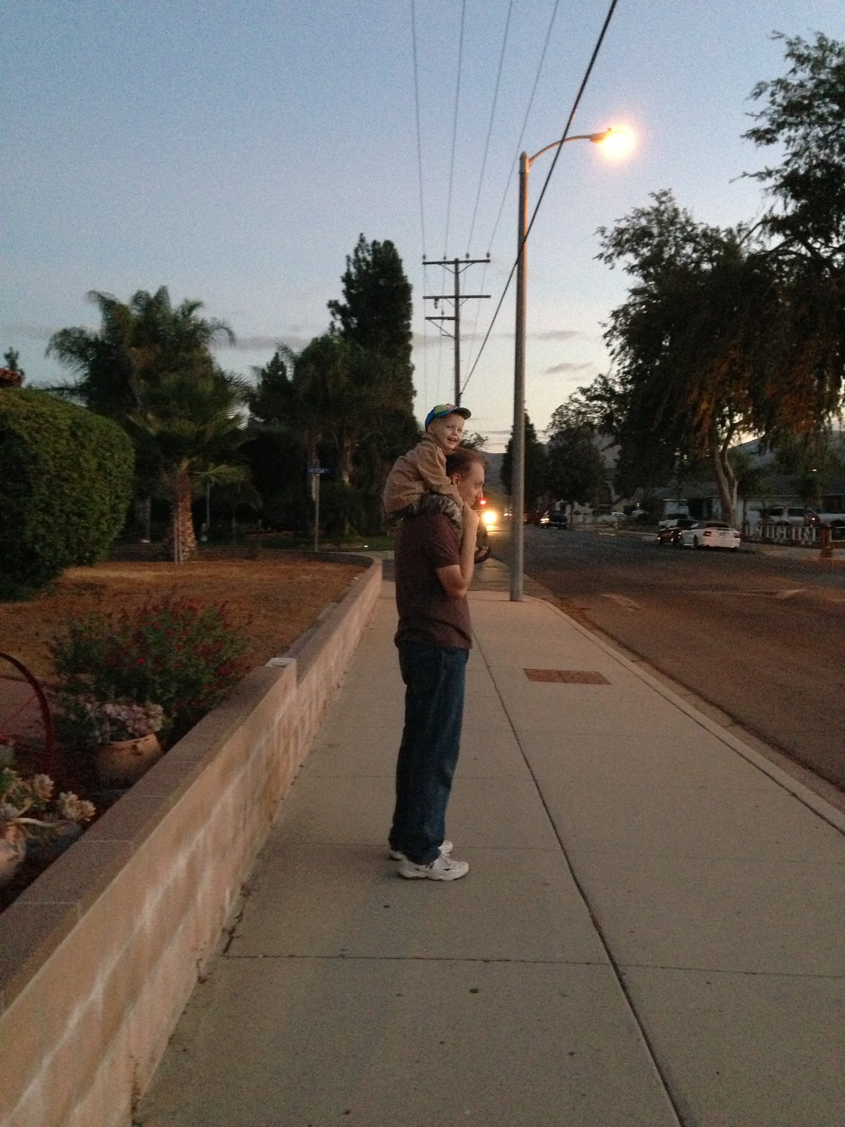 At the movie Theater today (I took the three older boys to see a movie). I leaned over and whispered in Luke’s ear “I love you” and he leans back over to me and says “I love Daddy”. I laughed! Tonight on our walk though I looked up at him on Brian’s shoulders and said “I love you” and he looked at me with a grin and said “I love Daddy…. (then a long pause) …. and YOU too…. and Daddy….”