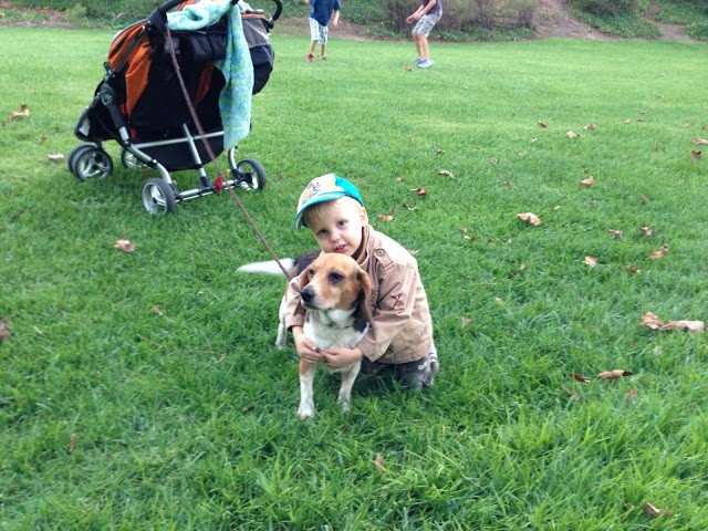 Fun times! They are cute with the dog. 🙂 Love the part about "I love Daddy"…haha! Something you will all laugh about over and over again through the years.