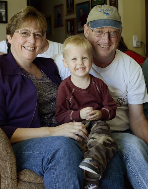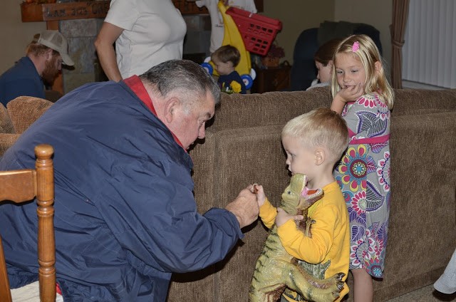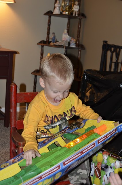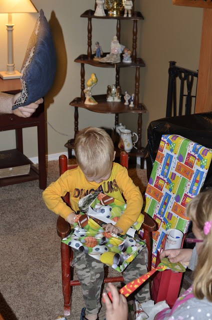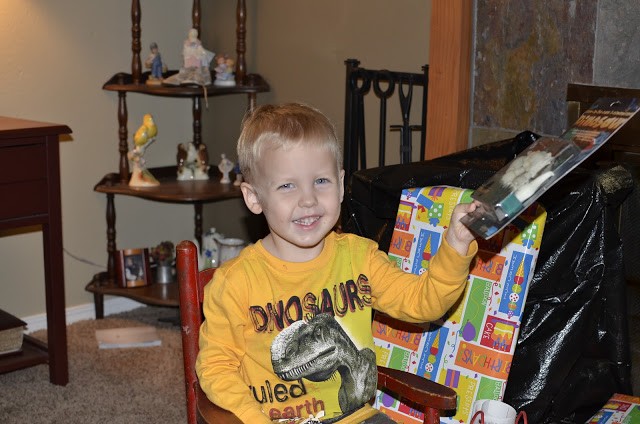 Such a great picture of these guys! He got to open his gift from them early. He loves his train set!!