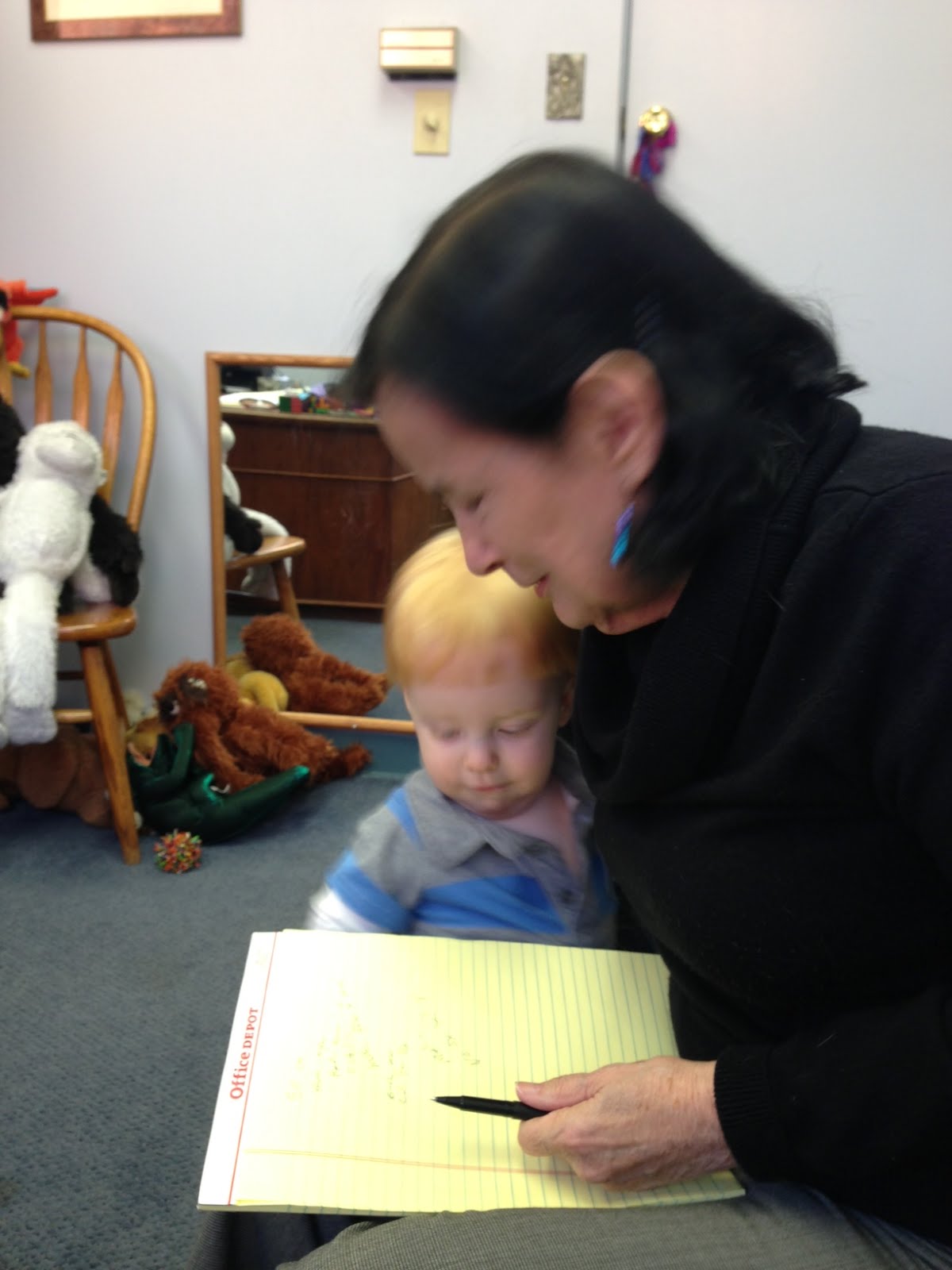 Most of the pics I post on here are now all from my phone. Its just easier. This is blurry but I love it. Dr. Morrison is so sweet and loves Gideon.