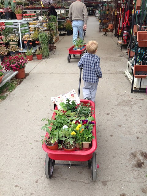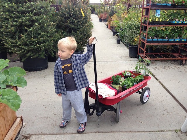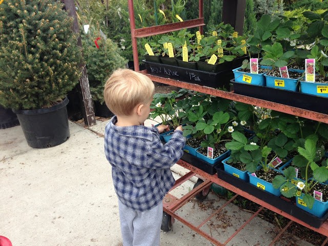 | We headed to Green thumb with Pop to get garden plants. Luke was excited to help get garden stuff. |