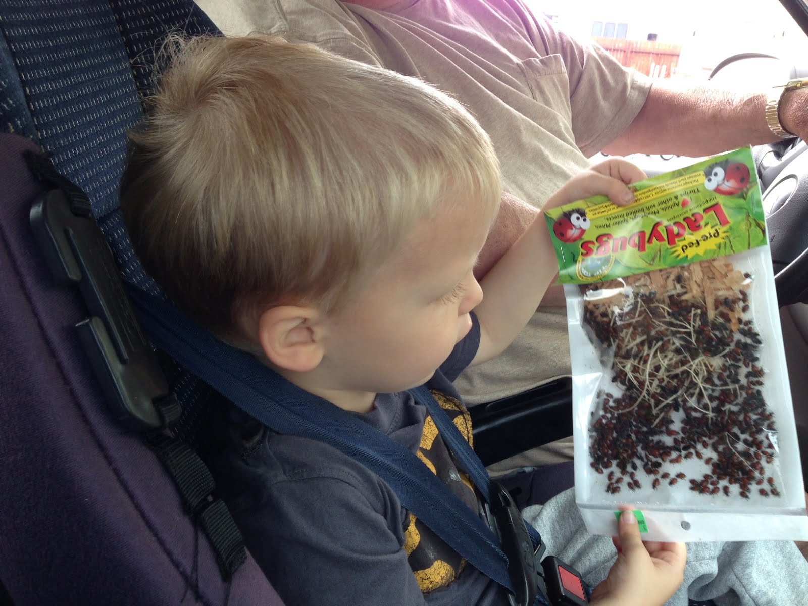 | His favorite thing was getting LADY BUGS to put on our roses that have some aphids on them. |