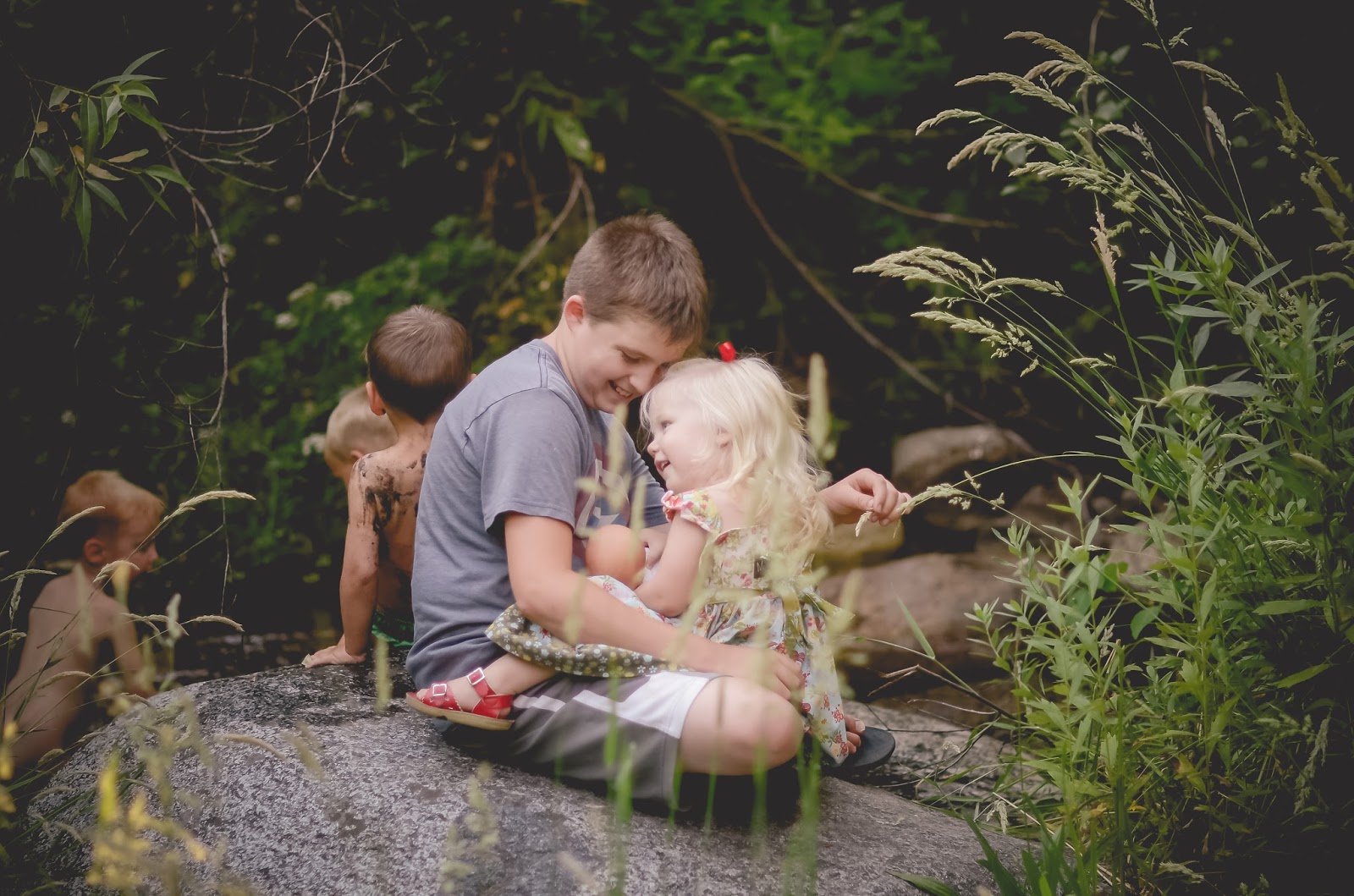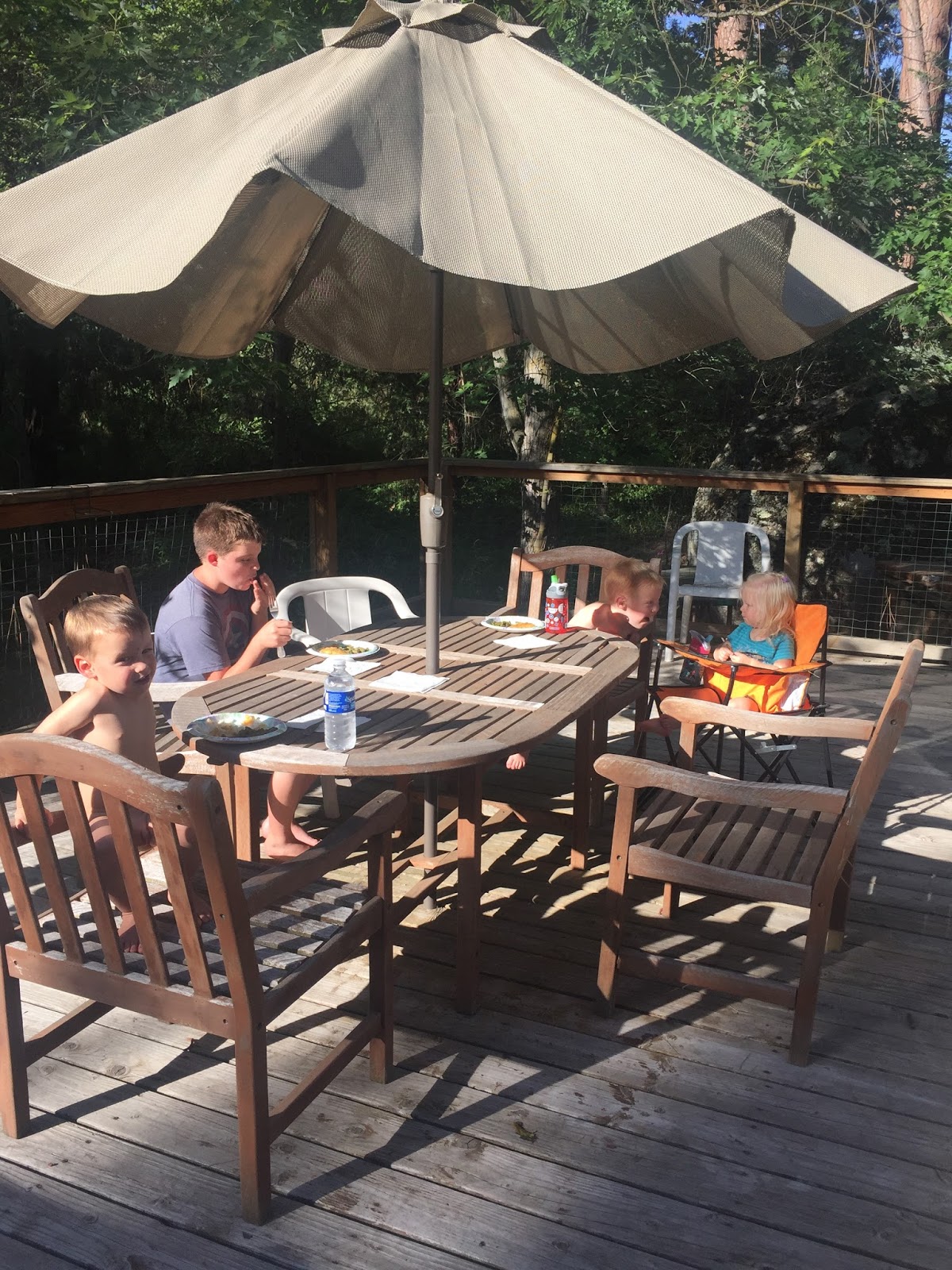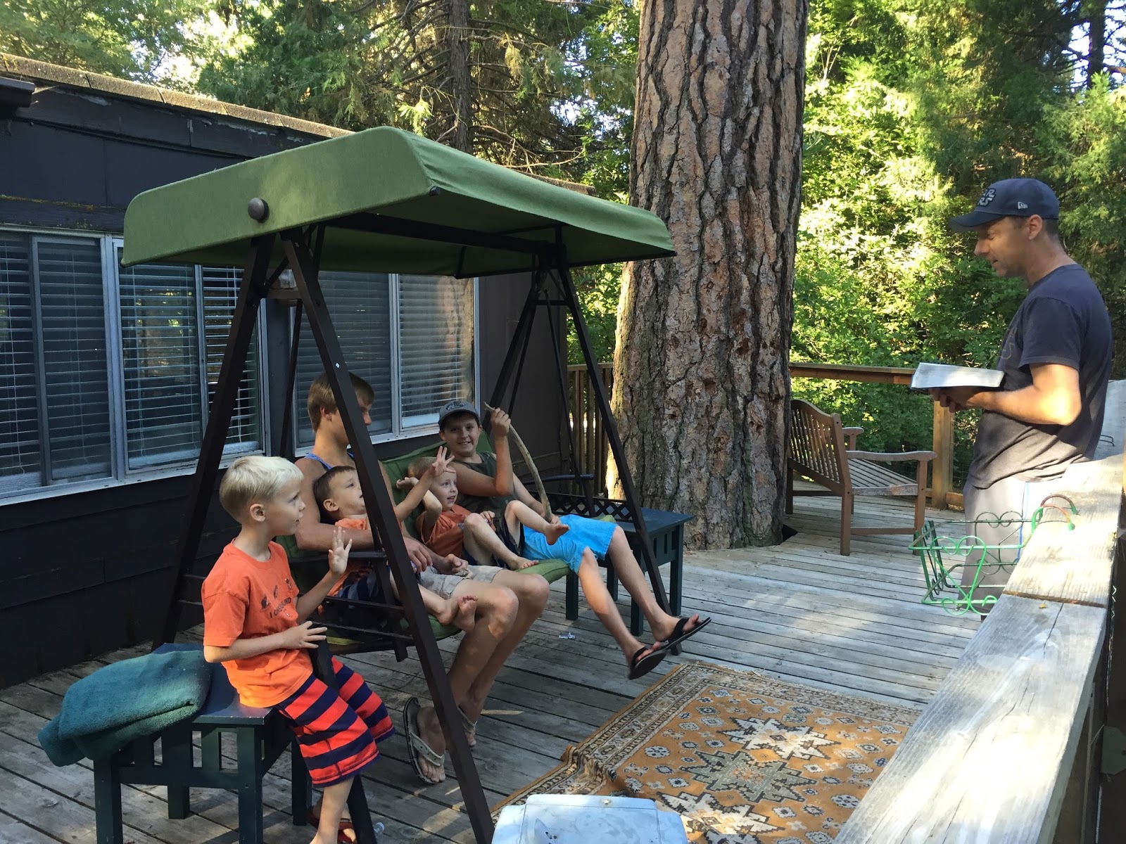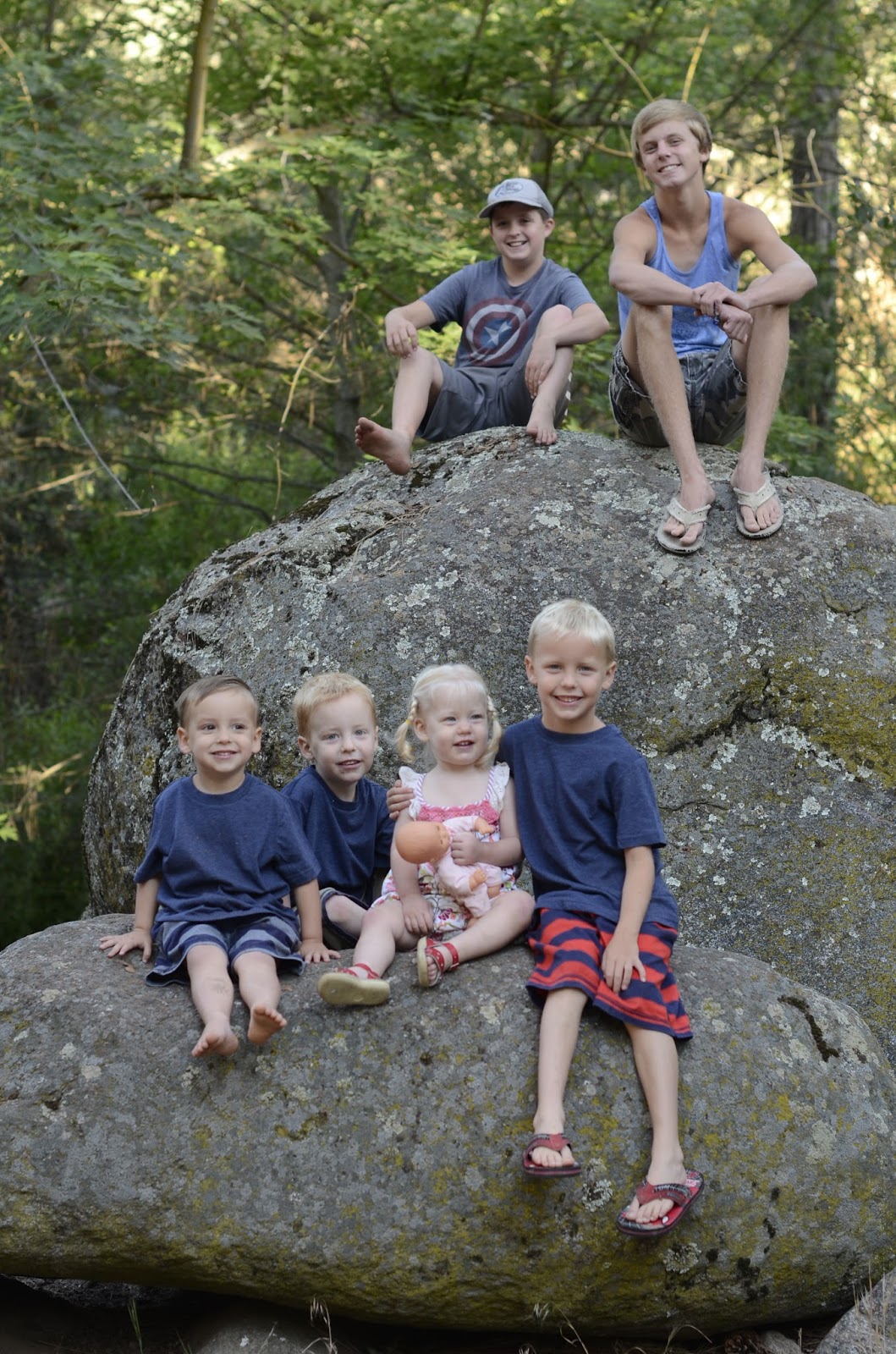 We had church on Sunday on the deck by the creek! Perfect church setting 🙂 Each of the boys brought a rock home as a reminder of something they are gonna work on and they each placed a rock there at the creek too. Adam says SELF CONTROL, Luke says sharing, Titus said being nice to Gideon. I don’t know what Gregory and Gideon’s were. What a neat thing to do tho.