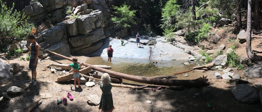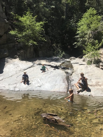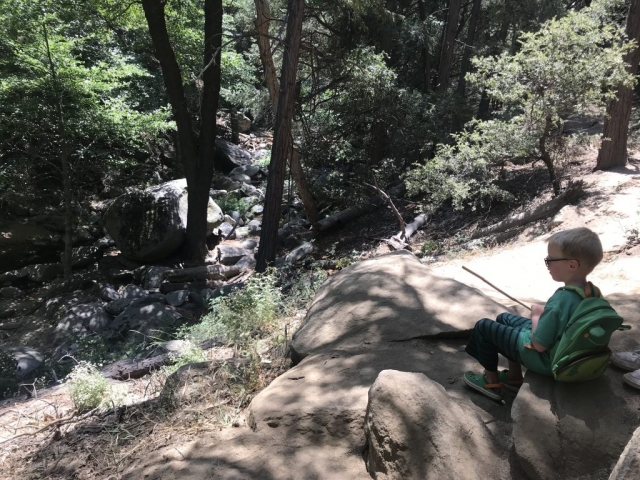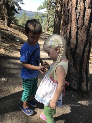 It was great to get away for even just a couple days! We found a reasonable Cabin in Big Bear and really enjoyed the time! It was great to get out in God’s beautiful creation for some hiking and adventure. We did two hikes with the kids. Lots of fun. Monday’s Hike was what the boys called the LIZARD HIKE. They found so many lizards and had fun catching (and releasing of corse). They found some bugs for their bug class (They are busy pinning bugs for the fair coming up soon). Tuesday’s hike was much more fun in different ways. We did the heart rock hike in Crestline, San B. mountains. Even though the water level was low it was still fun and found water to wade in. It was sort of tough for the little guys at times (steep). We all loved the hikes! They were all pretty much “starving” after and we found a yummy Mexican restaurant on Tuesday in San Bernardino to go to.